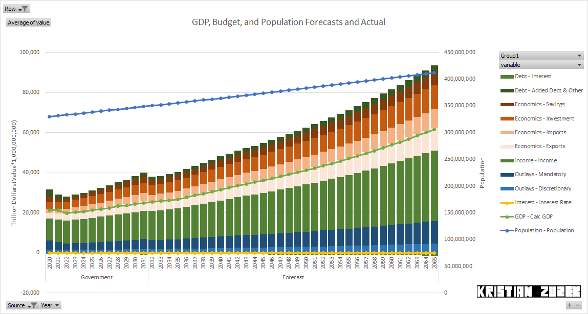 Budget of The Dollar Empire. The White House and Congressional Budget Office publish public data for yearly budgets. In order to understand the trajectory I have reverse engineered their numbers. I am not an engineer.