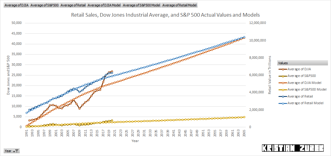 At a given level of consumption the number of goods stocked is relative to the population, thus the retail sales numbers fluctuate with the supply of goods and price of demand. Consequently, the price of equity, the value of aggregate stocks move with retail sales condition upon intervention on "free markets" by the modern political economy.