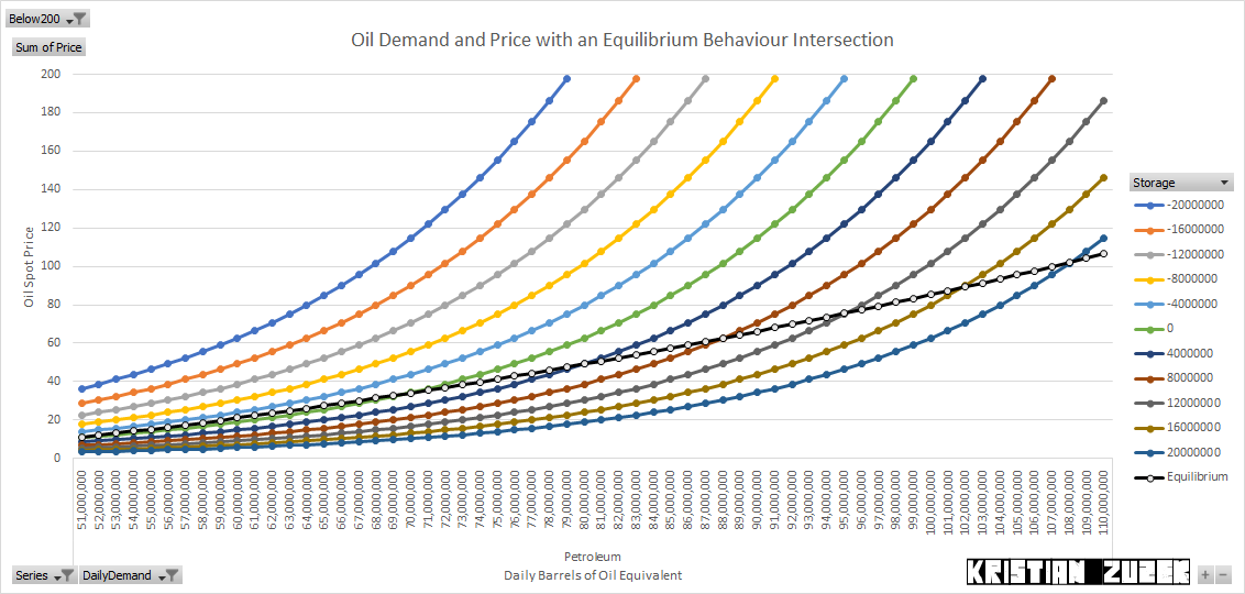 When products need to move often the fuel of movement is an oil derived product itself. When services move, they are less likely to need physical transport. At current oil industry costs, I would draw a line from $32 at 69 million Barrels daily oil consumption to $100 at 107 million Barrels daily oil consumption. When reserves of low cost oil have been depleted then there will be a different relationship between the price of gasoline and diesel at the pumping stations and the electricity that many services depend on.